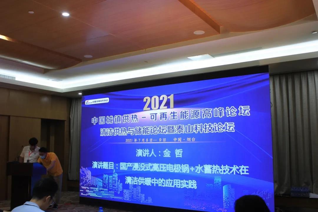 公司董事长金哲应邀出席本次会议并发表主题演讲,对北方地区清洁供热面积和清洁供热率做了分析,详细介绍了山东北辰“国产浸没式高压电极锅炉+水蓄热”和核心技术以及在北方地区清洁供暖的实践应用。山东北辰全浸没式高压电极锅炉采用电极盾调节功率,使用自主研发的电极和保护盾,并配有复合电瓷绝缘器和改良的驱动装置。该类锅炉适用于电厂调峰调频、风光电力消纳和大面积民用供暖及生活用水领域,具有启停迅速、节省配电费用、绿色无污染等优势;半浸没式高压电极锅炉采用液位调节功率,使用自主研发电极和复合电瓷绝缘器,该类锅炉储能密度高,能提供高温热水或蒸汽,可充分满足高寒地区高温供水的需求。山东北辰低压电极锅炉直接使用380伏工业用电,电极+锅炉的形式均为山东北辰自主研发,可直接接入软水,无需纯水装置,还可根据水质情况灵活调节功率,适用于工业园区或办公楼等公共建筑供暖,实现错峰用电,无需电力增容。